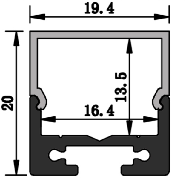 Z1911-2 Channel Anodized 19x20mm Domed Hanging 2.44m
